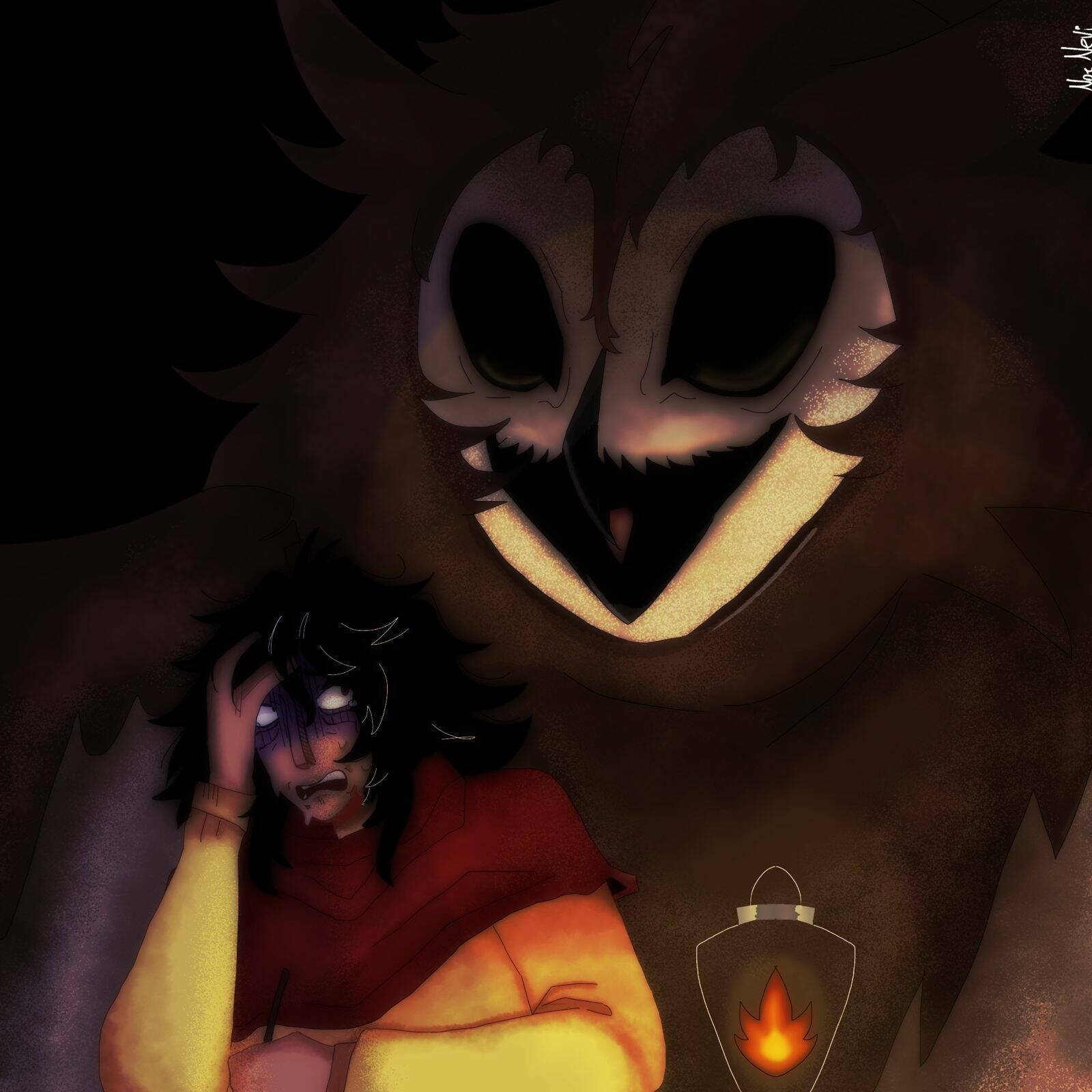 Por um instante, pareceu que aquela solitária emitiu um brilho laranja, talvez como uma forma de me chamar atenção para o monstro que se aproximou pela escuridão sem emitir som. Infelizmente, assim que tentei correr, meus pés deslizaram sobre a grama como em um um congelado. Foi quando olhei para aqueles olhos. Olhos escuros, profundos e, de certa forma, infinitos.