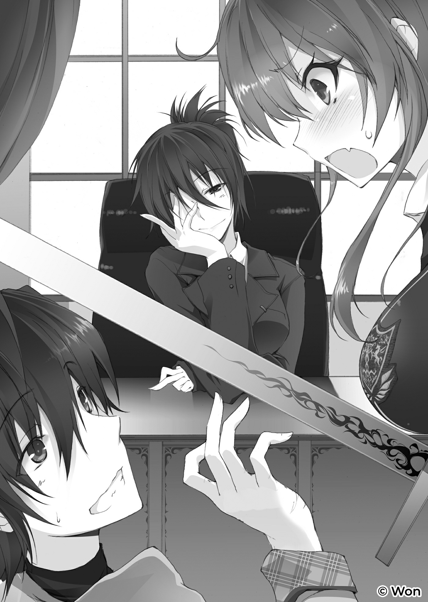 “Entendo. Você pensou em se redimir por vê-la em roupas íntimas despindo-se,” — a diretora, Shinguuji Kurono, disse com um suspiro após ouvir a explicação de Ikki para o que tinha acontecido. Ela estava sentada em frente a Ikki em uma cadeira de couro, com um cigarro na boca. Ela era uma mulher impressionante, e o terno preto que usava servia perfeitamente nela. — “Você é um idiota?”