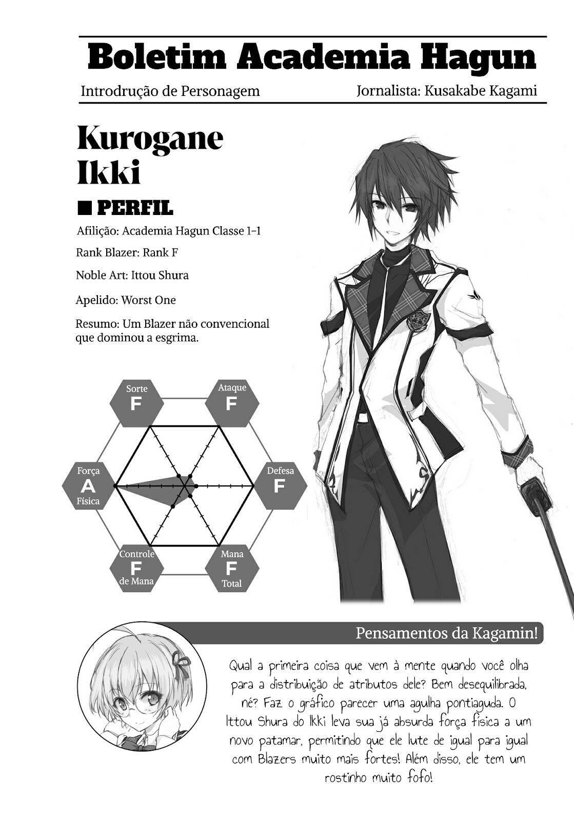 Ikki não tinha ideia do que Stella estava falando, mas ele tinha a política de não se aprofundar muito em coisas que não entendia. Ele se voltou novamente para o cartaz da cerimônia de abertura, pensando nos dias que viriam. Muito em breve, as batalhas para determinar quem representaria a Academia Hagun no Festival de Batalha das Sete Estrelas começariam.