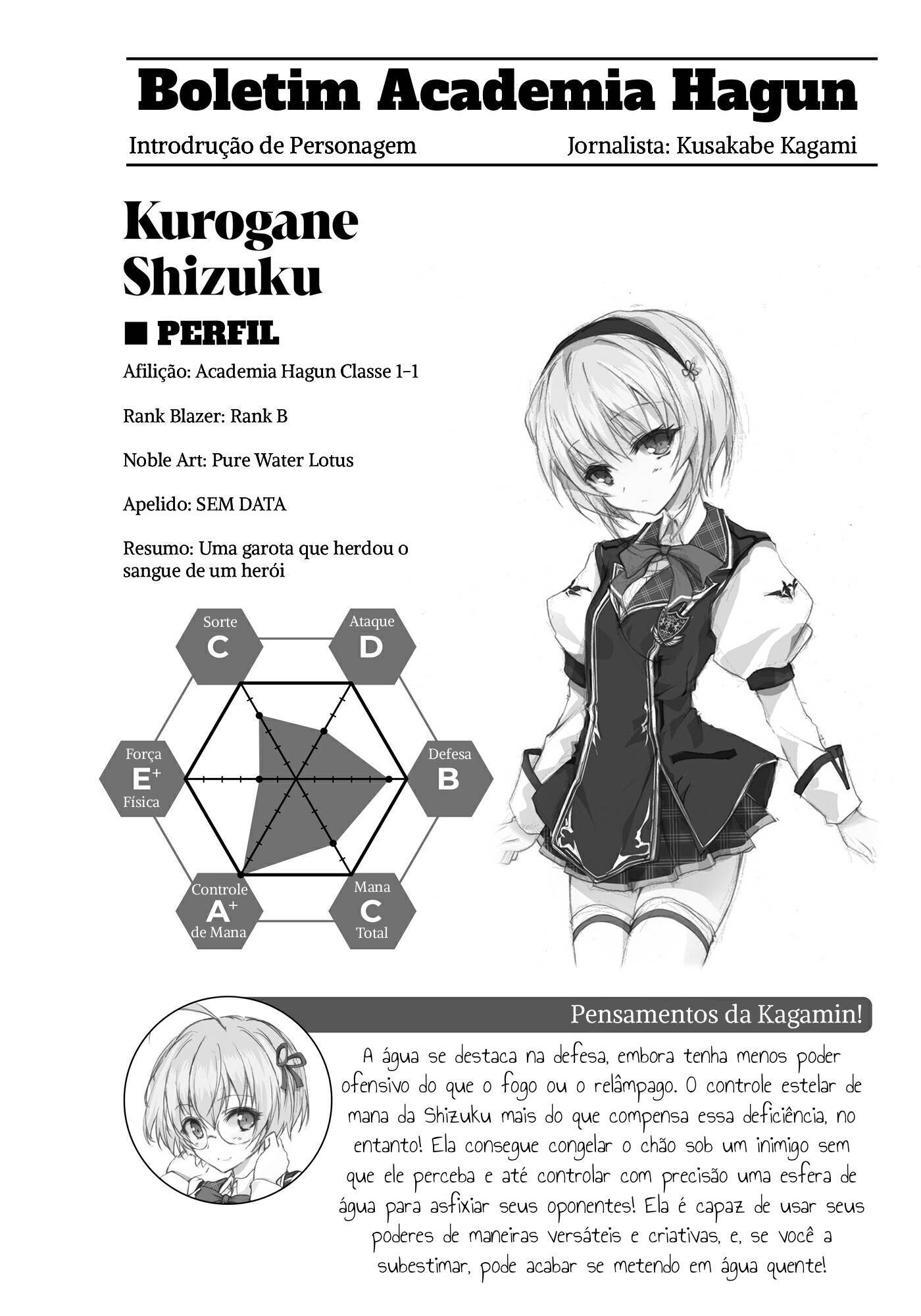 “Não tenho tanta certeza sobre isso. É claro, provavelmente há alguns que se recusam a aceitar a realidade, mas imagino que todos os alunos fortes que estão seriamente almejando o título de Rei das Sete Estrelas tomaram nota do cavaleiro conhecido como Kurogane Ikki. Não tenho dúvidas de que eles ficarão de olho em suas próximas partidas. Ninguém jamais poderá chamá-lo de Worst One de novo, pelo menos.”
