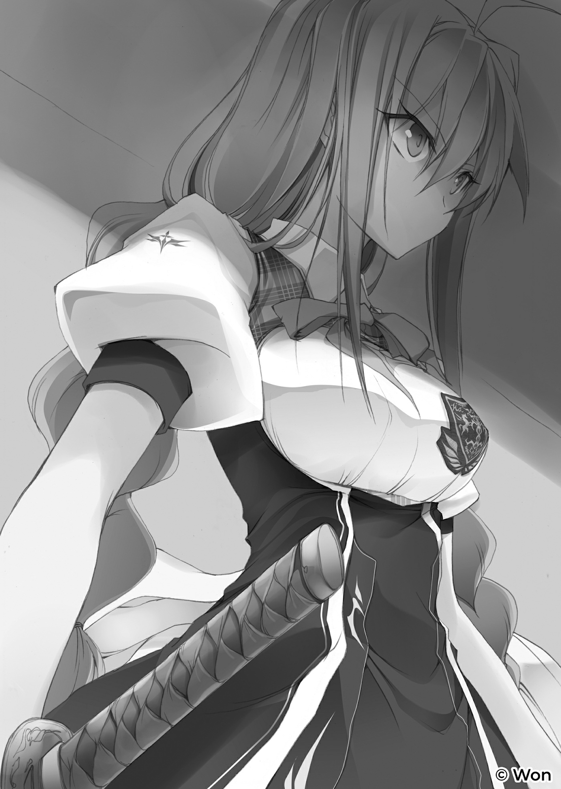 “E no canto vermelho, temos a própria presidente do conselho estudantil e a atual Blazer mais bem ranqueada da escola! No ano passado, ela chegou às semifinais do Sete Estrelas! Sua derrota foi para Moroboshi, da Academia Bukyoku, que acabou se tornando o capeão do torneio! Ela passou o último ano treinando mais duro do que nunca e, é claro, também ostenta uma sequência perfeita de vitórias nas seletivas deste ano! Seu golpe característico invencível é mais rápido que um relâmpago e capaz de cortar aço! Será que a nossa famosa Raikiri, Toudou Touka, derrotará a oponente de hoje em um instante, ou este será o dia em que ela finalmente cairá do trono?!”