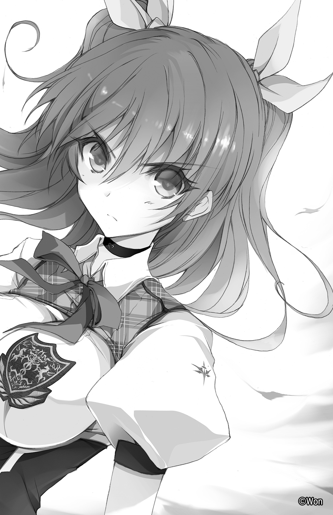 “Eu tenho uma grande objeção a isso”, disse a voz gélida, atingindo cada par de ouvidos apesar do alvoroço vindo da multidão. Havia apenas uma pessoa a quem uma voz como aquela — uma voz que contrastava tanto com a clareza da de Stella — poderia pertencer e, com certeza, Mikoto Tsuruya, a garota de cabelos loiro-acinzentados conhecida como Icy Sneer, saltou de uma altura de mais de nove metros da arquibancada para pousar silenciosamente no gramado artificial que cercava o ringue. “Senhor, acho estranho que tenham discutido tudo isso e me excluído inteiramente.”