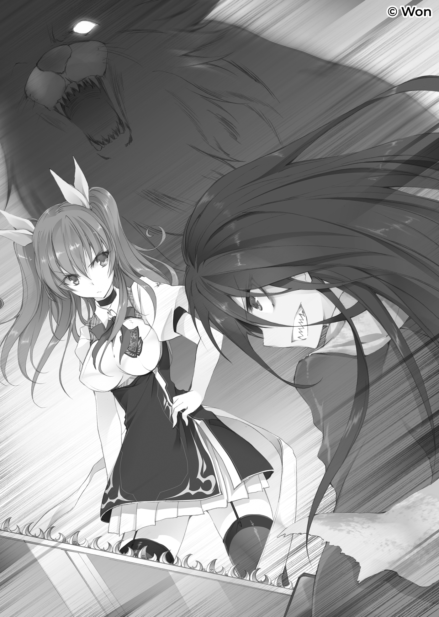 Stella respirou fundo, e Reisen sentiu seu pulso acelerar bruscamente. Seus instintos moldados no submundo o alertaram do perigo — se ela tivesse permissão para terminar o que estava fazendo agora, as coisas ficariam feias. Ele os seguiu sem hesitação.