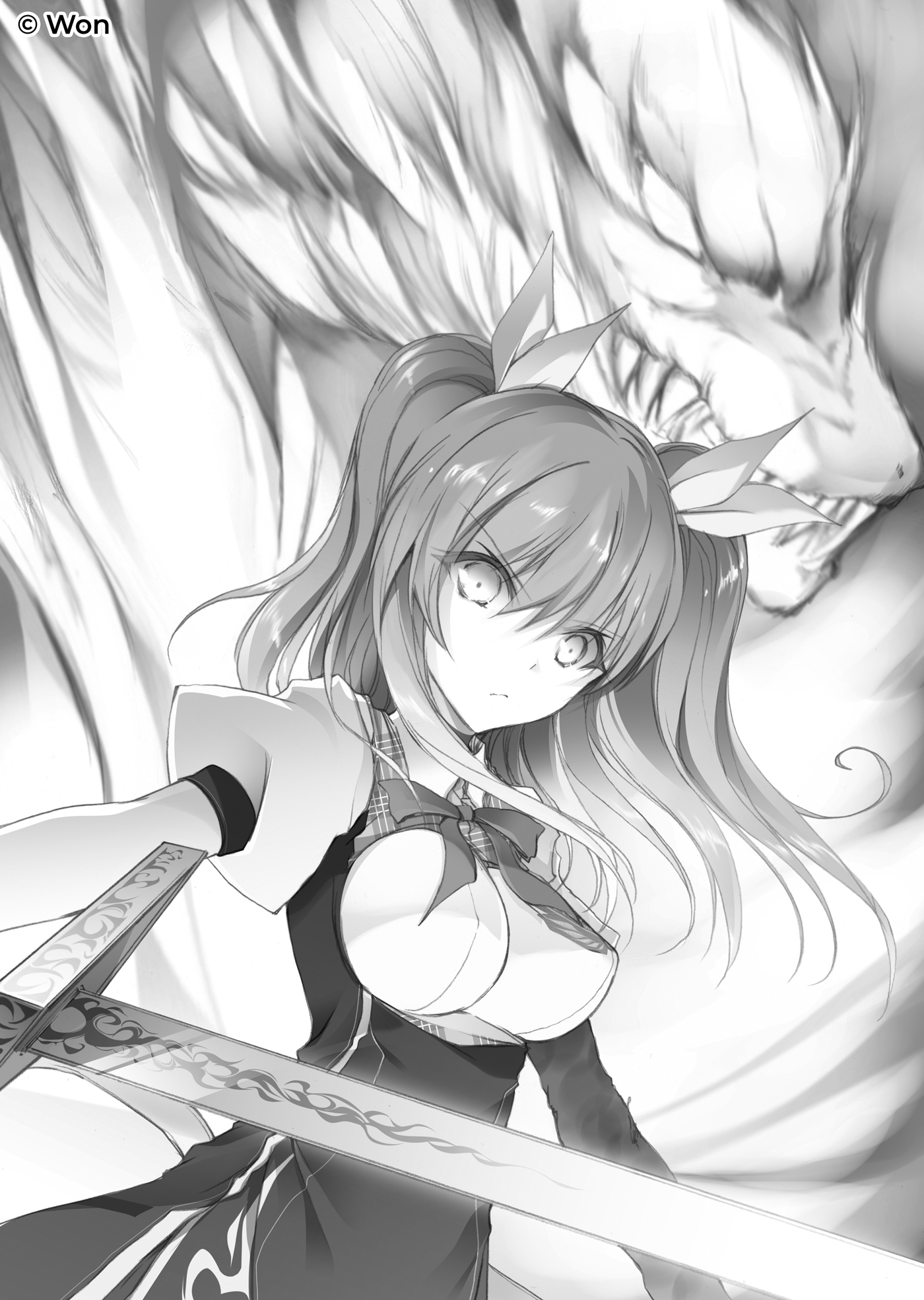 “Velocidade. Com certeza, a de Stella-chan é uma espada gigante que ostenta um poder destrutivo incomparável, mas sua rapidez está longe de se igualar ao Raikou (Thunderclap) de Ikki. Além disso, como a arma tem o comprimento da altura de um ser humano, o movimento do golpe precisa ser mais amplo. Eu me pergunto se ela realmente consegue produzir uma velocidade que rivalize com a do Raikou.”