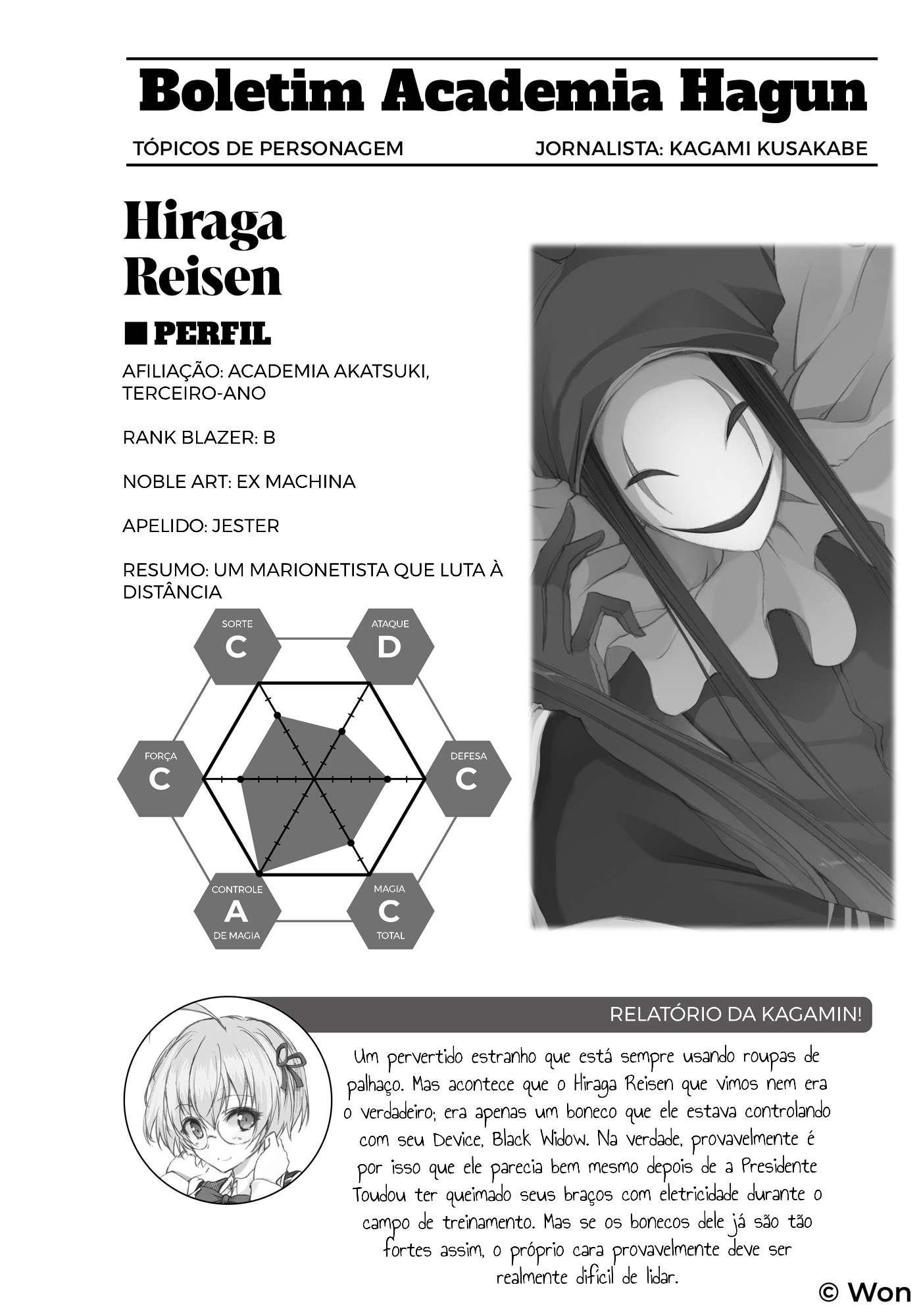 "Mas esse tipo de habilidade é consistente com o registro de batalha misterioso dele, certo? Entendo, entendo."