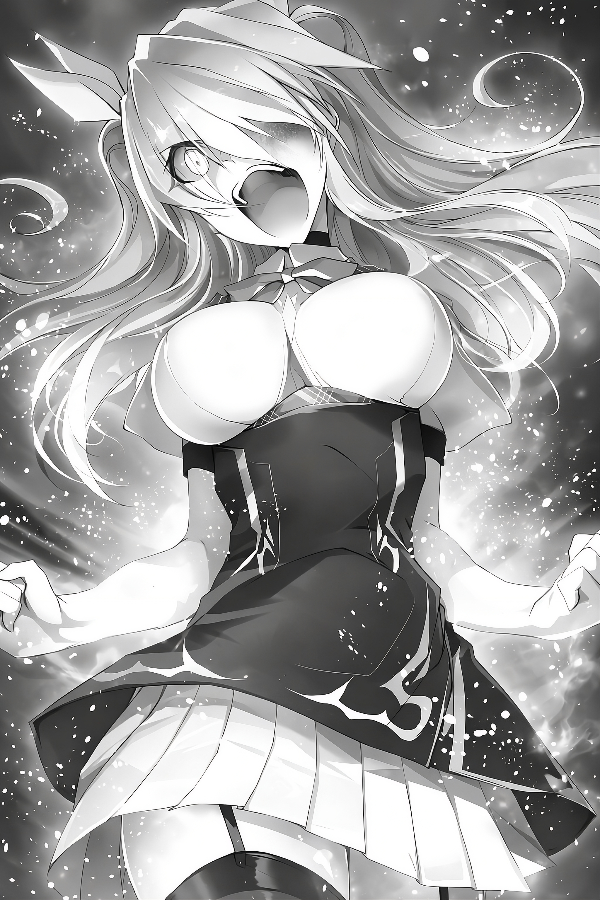 Ela manifestou seu próprio Device em resposta à aproximação veloz de Ouma. Contudo, o que ela criou a partir de seu poder mágico ── não foi apenas a espada.
