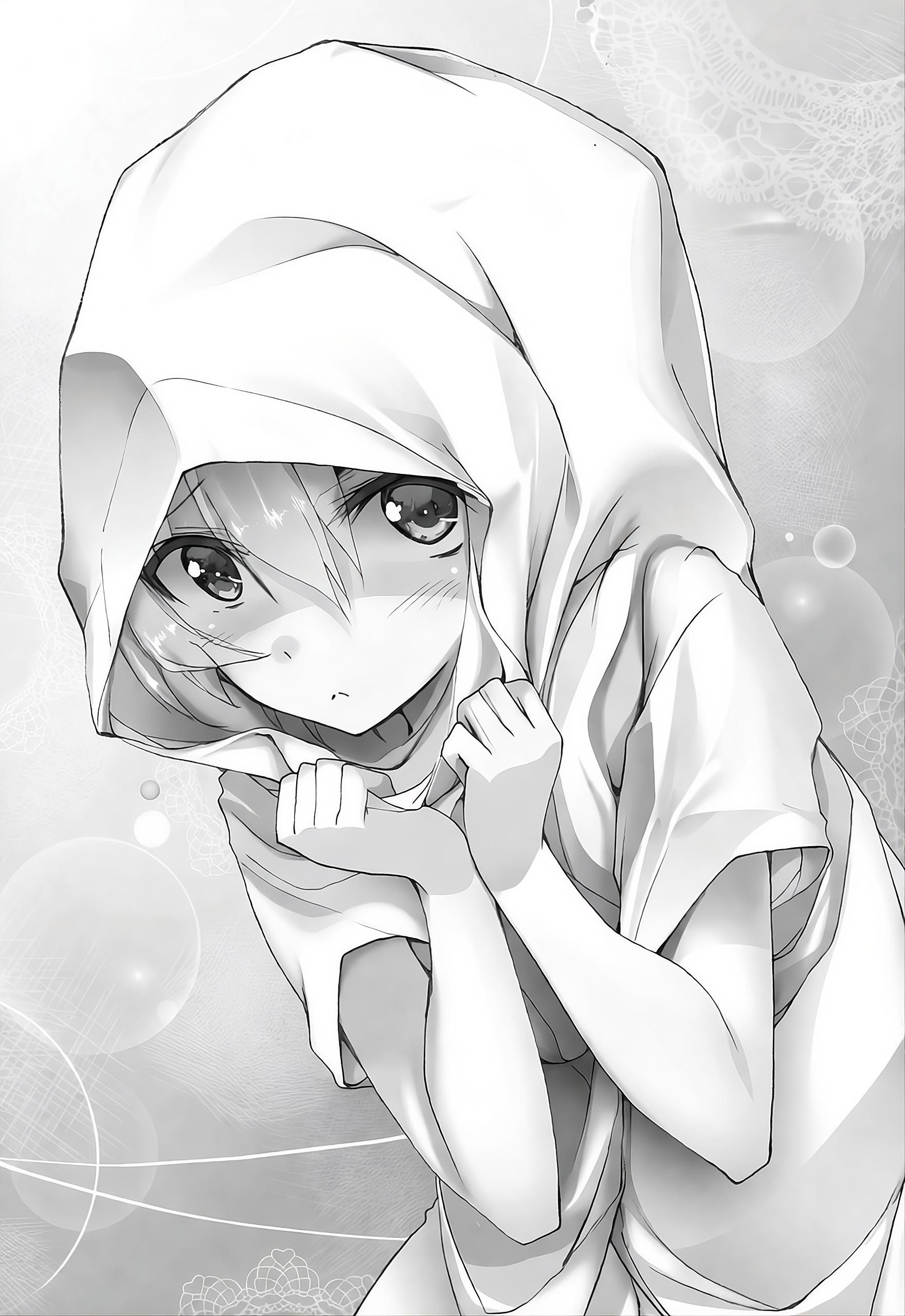 Shizuku havia escondido a cabeça com suas roupas. Então, espiou pela gola com um olhar de desculpas…