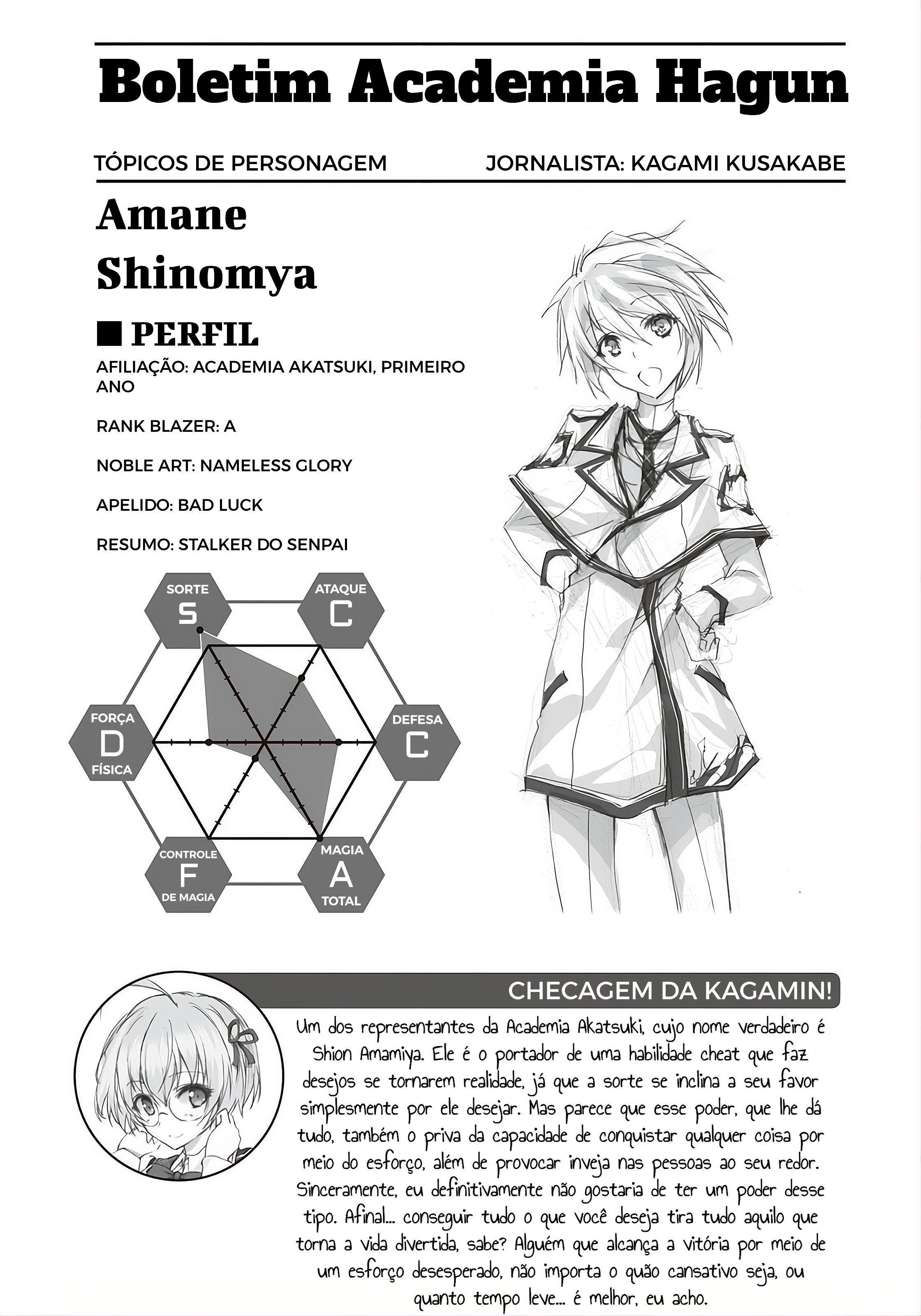 Nas finais de amanhã, este excessivamente forte Cavaleiro Rank-F enfrentará a verdadeira e absoluta potência, a Princesa Carmesim, Stella Vermillion, que possui o maior poder mágico do mundo. Não há como evitar que já estejamos ansiosos por isso agora mesmo.」