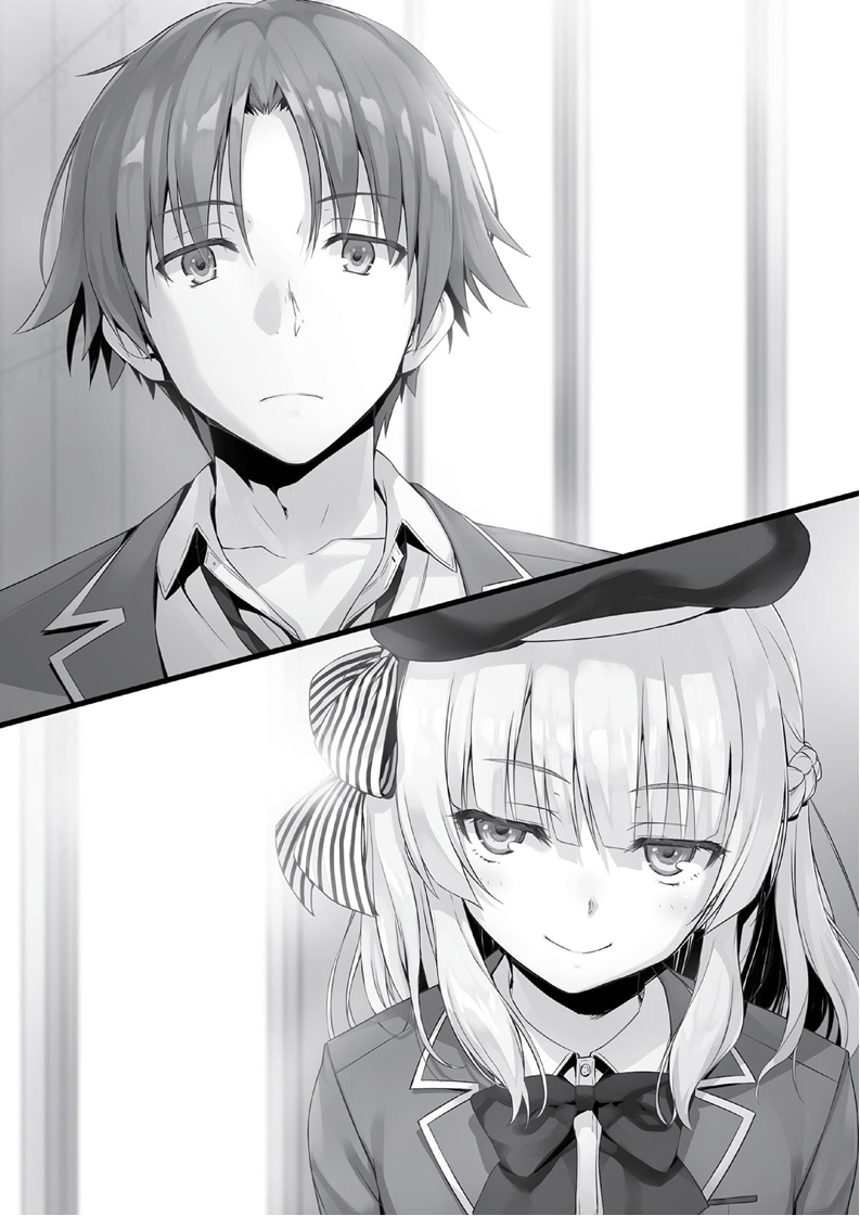 — Mas acho mesmo que estou em apuros… Sinceramente, se eu não tivesse falado com você, Ayanokoji-kun, talvez tivesse conseguido tomar uma decisão mais rápido. O que você acha, Ayanokoji-kun?