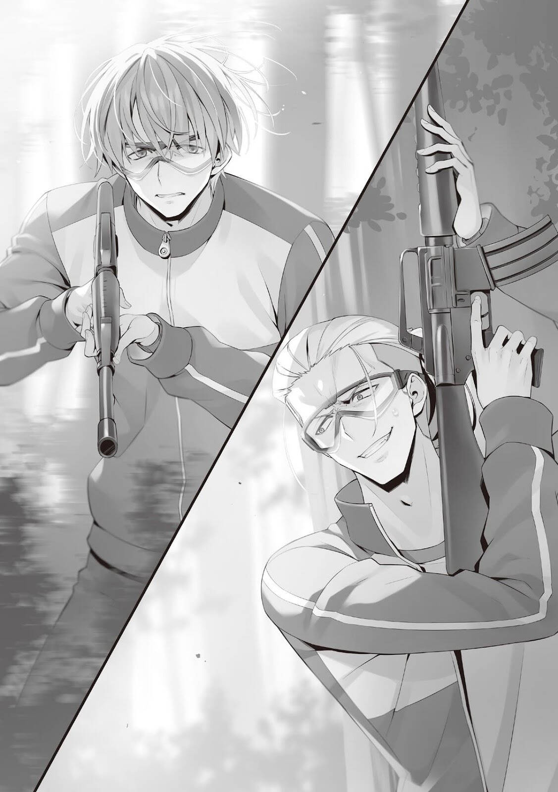 Com o início da fase final se aproximando, Ayanokoji deu um passo à frente em silêncio. Uma onda de tensão percorreu a Classe A. Dedos se apertaram nos gatilhos, os canos das armas acompanhando cada movimento dele.