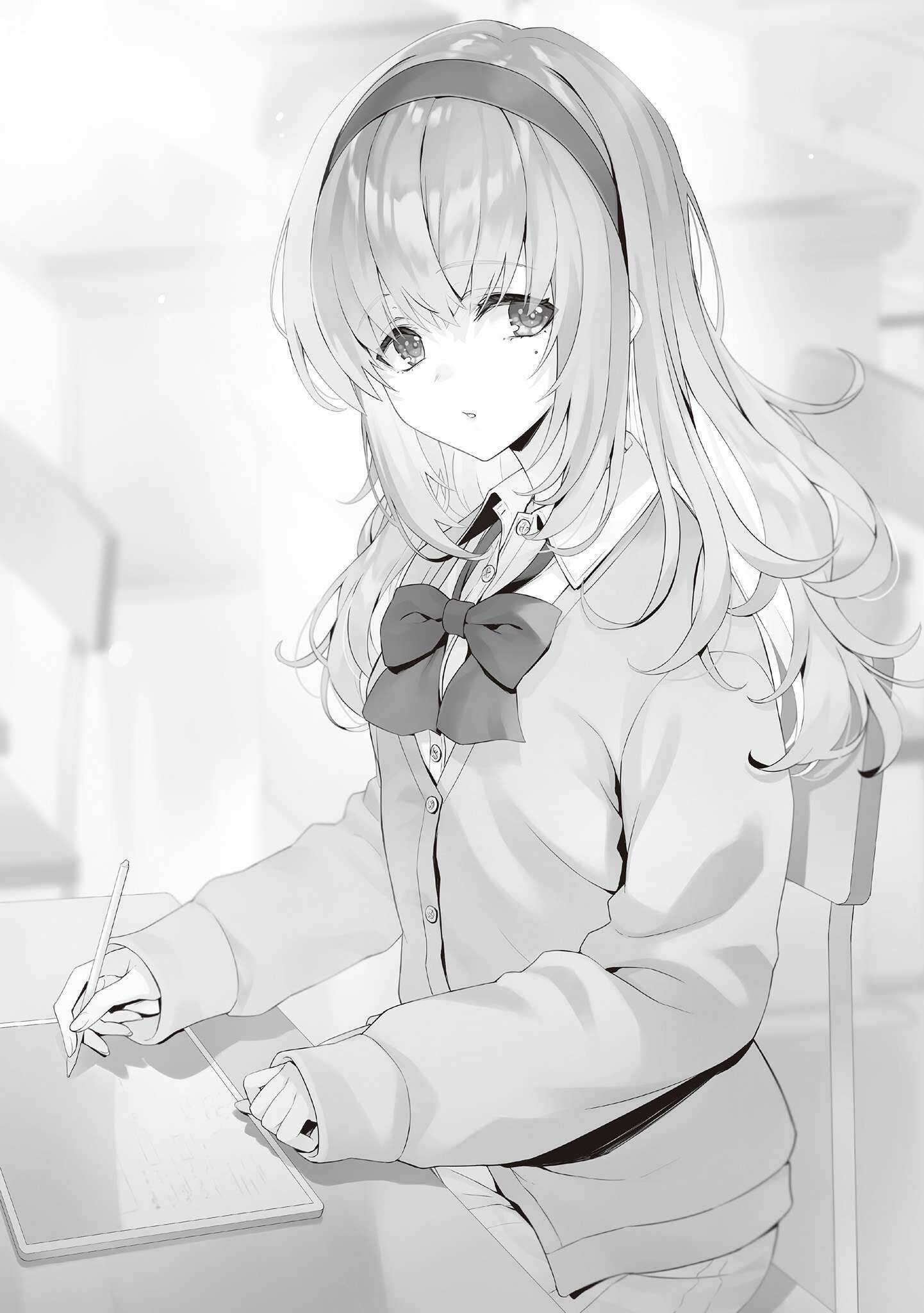 A sala deveria estar vazia, mas...Desde o início, algo inesperado aconteceu. Eu tinha a intenção de ser o primeiro a entrar, mas esse plano foi por água abaixo. Ao olhar para frente, vi uma aluna sentada ao lado da minha mesa. Ela estava olhando para seu tablet. Ao ouvir a porta se abrir, ergueu os olhos com certa surpresa.