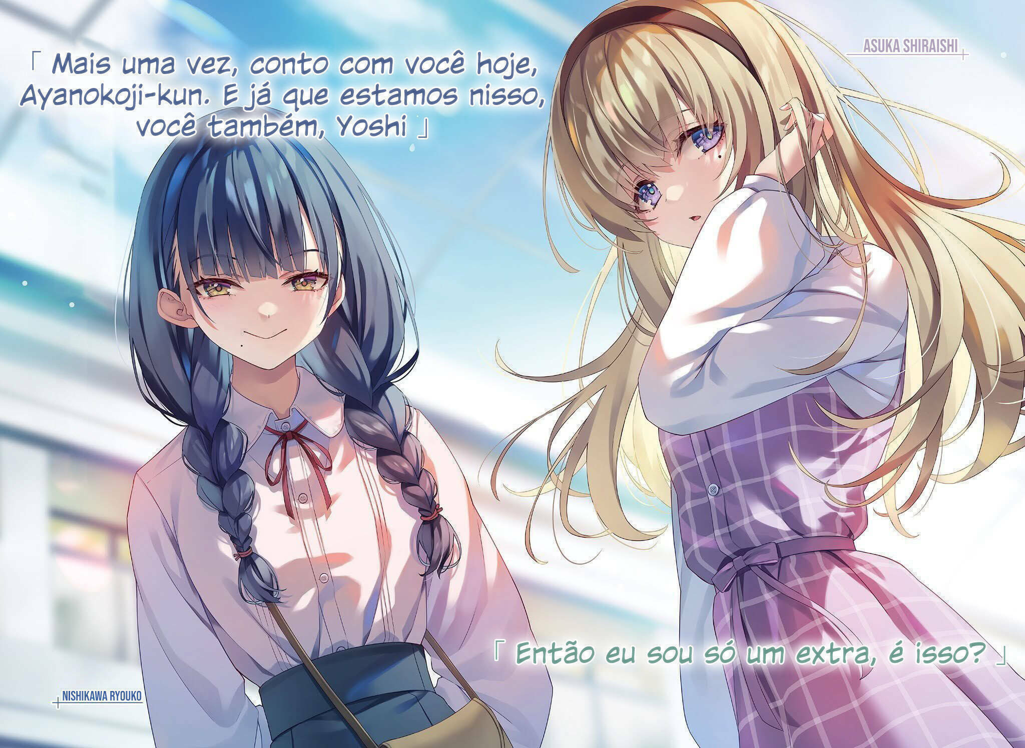 Fico na segunda fileira, do lado do corredor, no quarto assento da frente para trás. Esse foi meu assento no primeiro dia na Turma 3A. E bem ao lado, no quarto assento da primeira fileira, estava escrito o nome de Ayanokoji-kun.