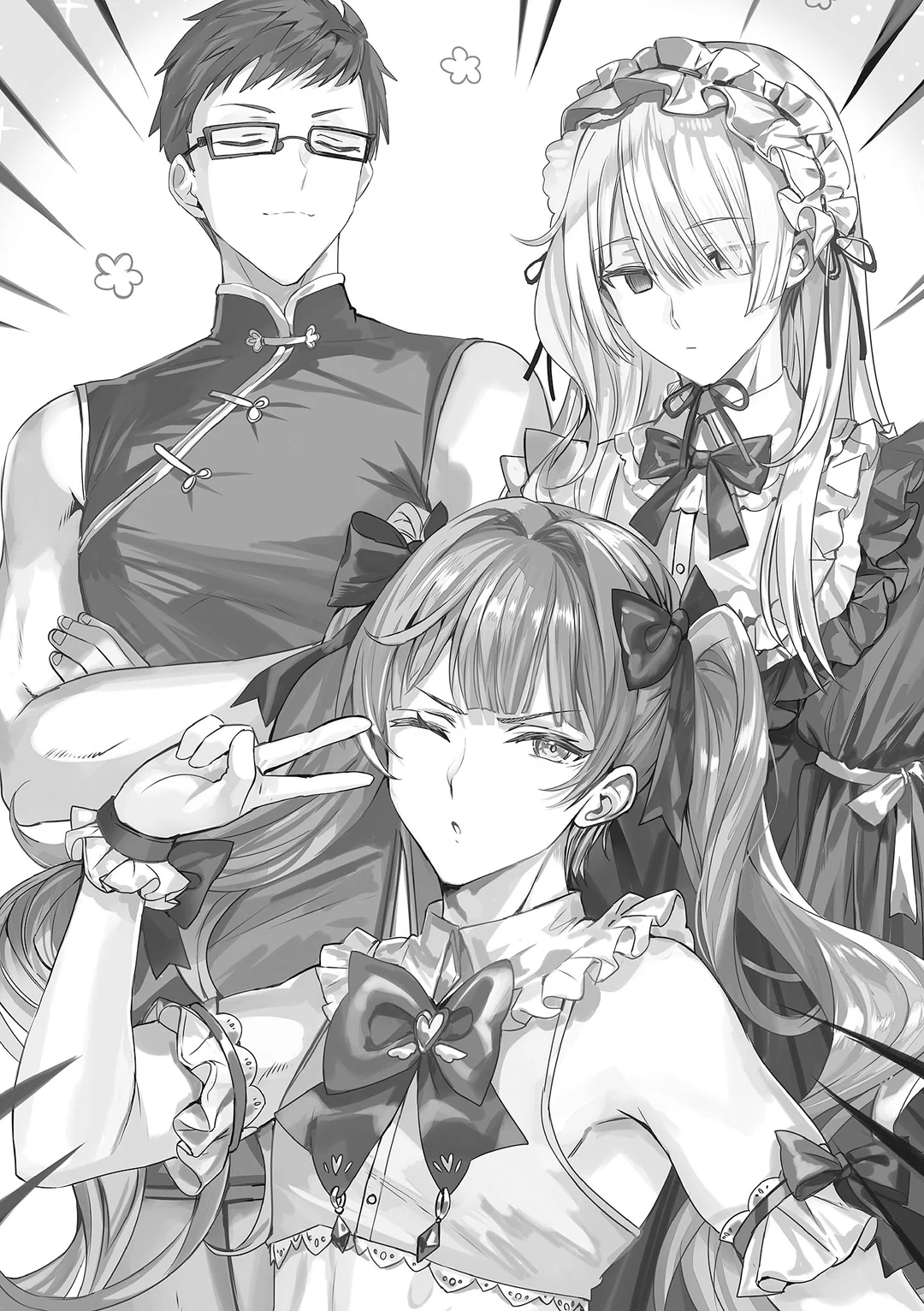 O Clube de Artesanato estava começando a parecer mais um estúdio de fotos de cosplay. Observando aquilo de lado, Alisa se aproximou de Masachika, que ainda estava sendo agarrado por Maria no canto da sala.