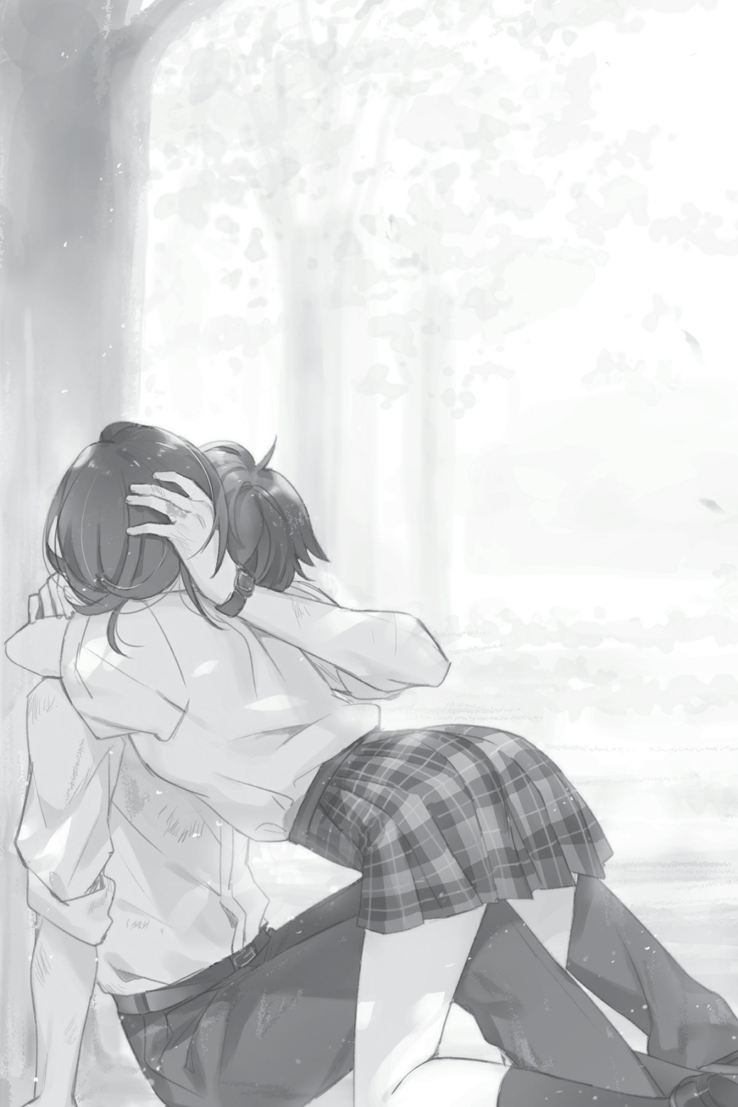 Não tinha certeza se Yuzuki estava profundamente pensativa ou apenas olhando para algo distante. Mas seu perfil, que eu tinha me acostumado tanto a ver ultimamente, parecia sereno e calmo. Ela ainda estava tão perto, mas logo estaria além do meu alcance. Eu queria segurá-la. Mas me forcei a olhar para o céu.
