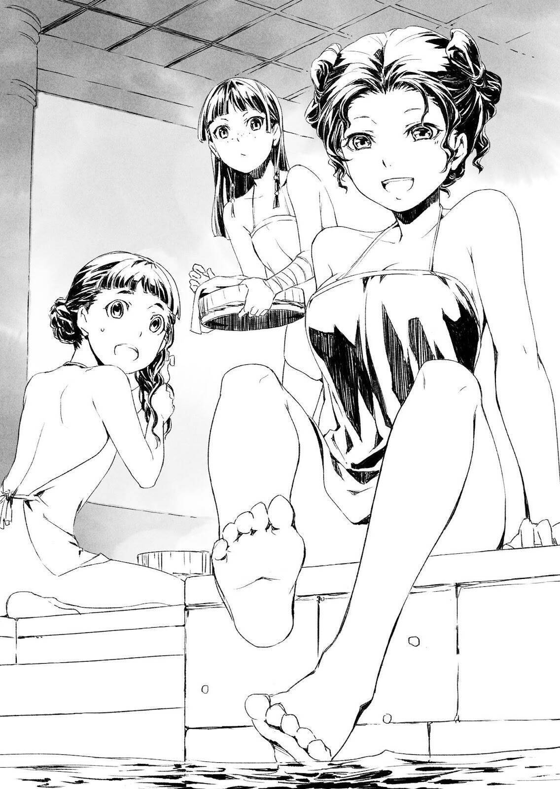 Shisui entrou na banheira do mesmo jeito que Maomao, enquanto Xiaolan foi para a de água fria. Provavelmente era mais confortável para ela; vilas agrícolas como a de onde ela vinha raramente tinham o costume de tomar banhos quentes.