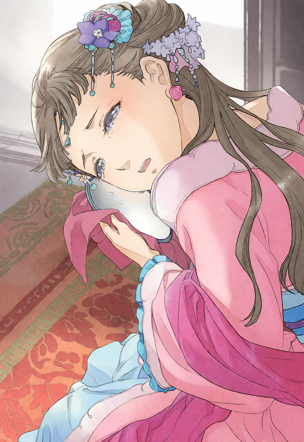Agora Maomao entendia por que ela tanto prezava aquele espelho. Era uma lembrança de sua mãe. Talvez ela esperasse que sua filha sentisse que, mesmo no palácio interno, tão distante, ela sempre estaria ao seu lado. A própria Maomao não sabia ao certo o que era uma mãe. Mas era claramente algo tão importante que inspirava emoções profundas nessa concubina.