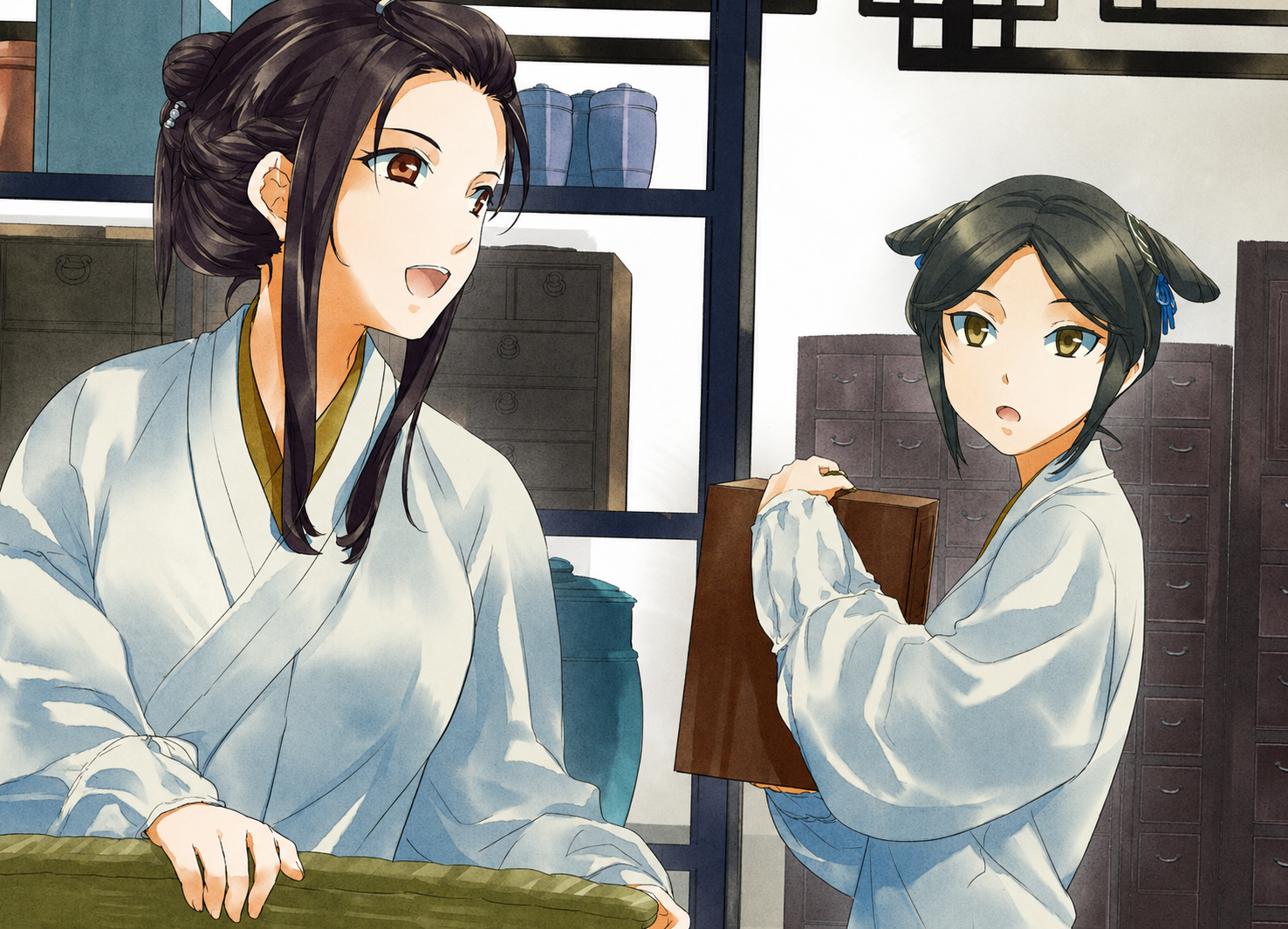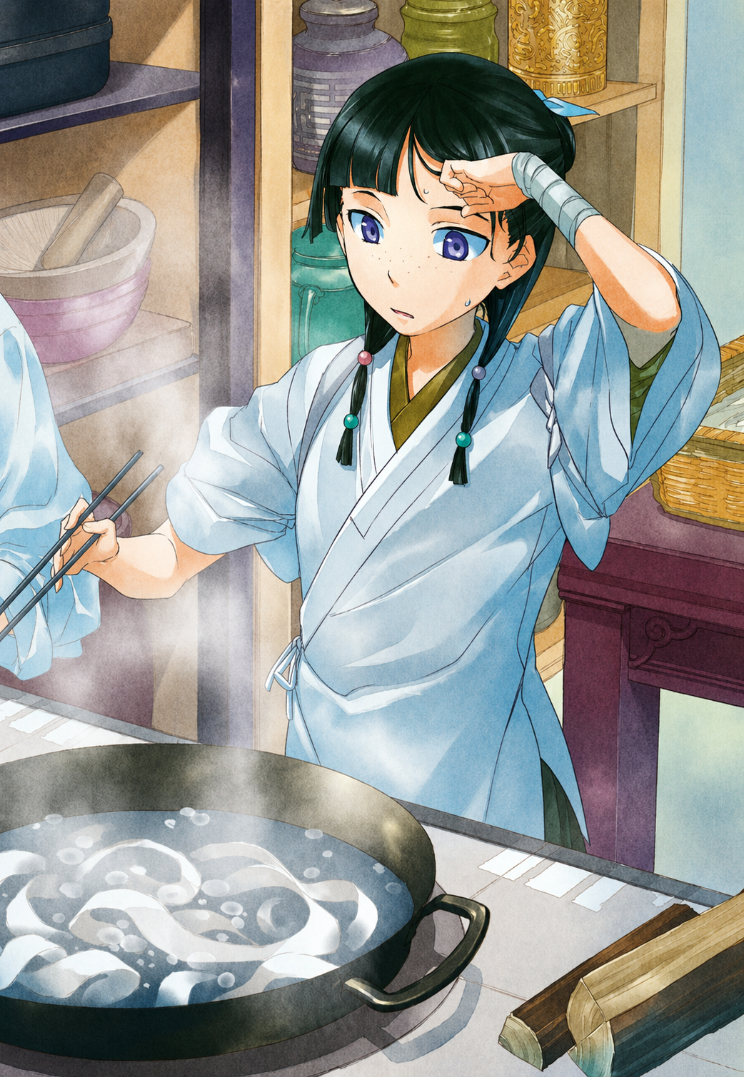 Duas delas parecem particularmente dedicadas. Das outras quatro novas damas da corte, duas trabalhavam com notável empenho: uma que Maomao havia tomado como líder do grupo, e outra que parecia reservada e silenciosa.