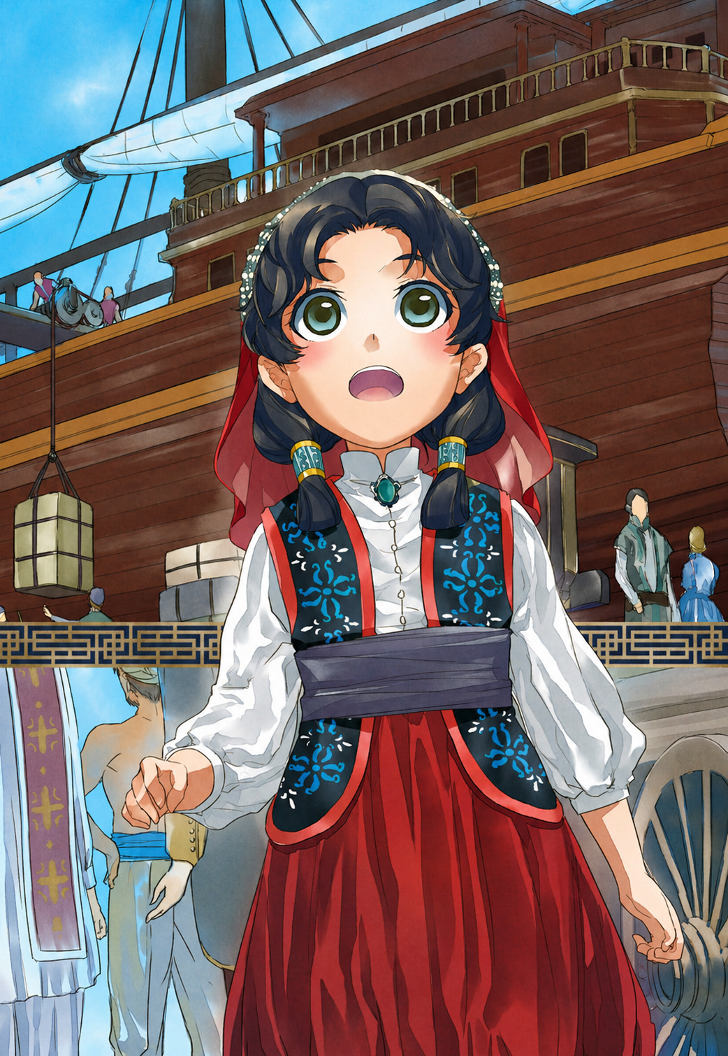 Perguntaram se ela queria ir com sua senhora em um barco para um país distante, e ela decidiu que queria. Ela já tinha estado em um barco uma vez, depois de ter sido vendida como escrava, mas tinha sido horrível. Este barco parecia muito mais divertido. Ela não tinha passado mal nem mesmo no barco de escravos, então achava que não haveria problema com esse. Mas a pessoa a quem servia era frágil e fraca, então Jazgul teria que trabalhar ainda mais e ser ainda mais enérgica.