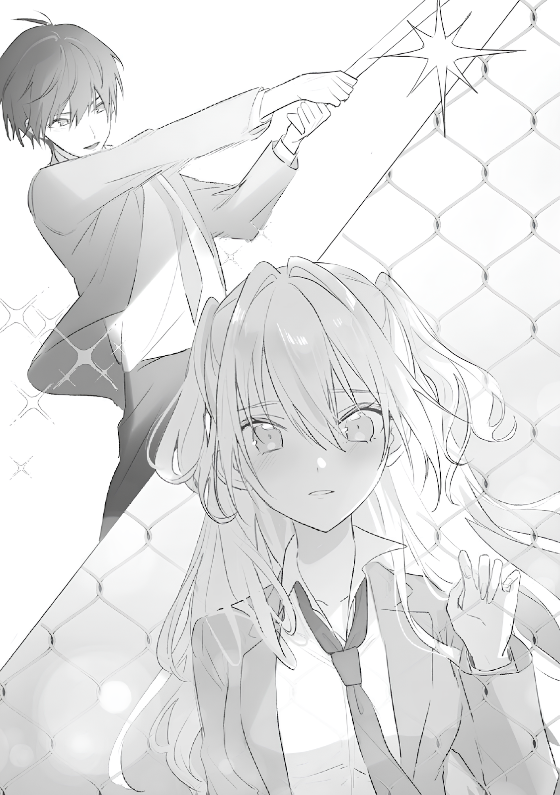 Seguindo o olhar de Natsuki, vi Kazemiya andando à nossa frente, voltando para a aula. Seu perfil frio e gracioso captava a luz suave da manhã, e havia de fato uma gentileza em sua expressão.