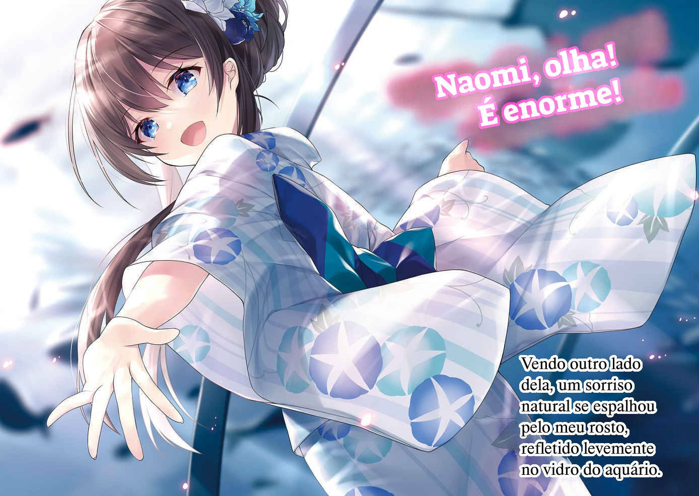 Eu queria admirar como ela ficava de yukata, mas ela era tão adorável que eu nem conseguia olhar para ela diretamente.