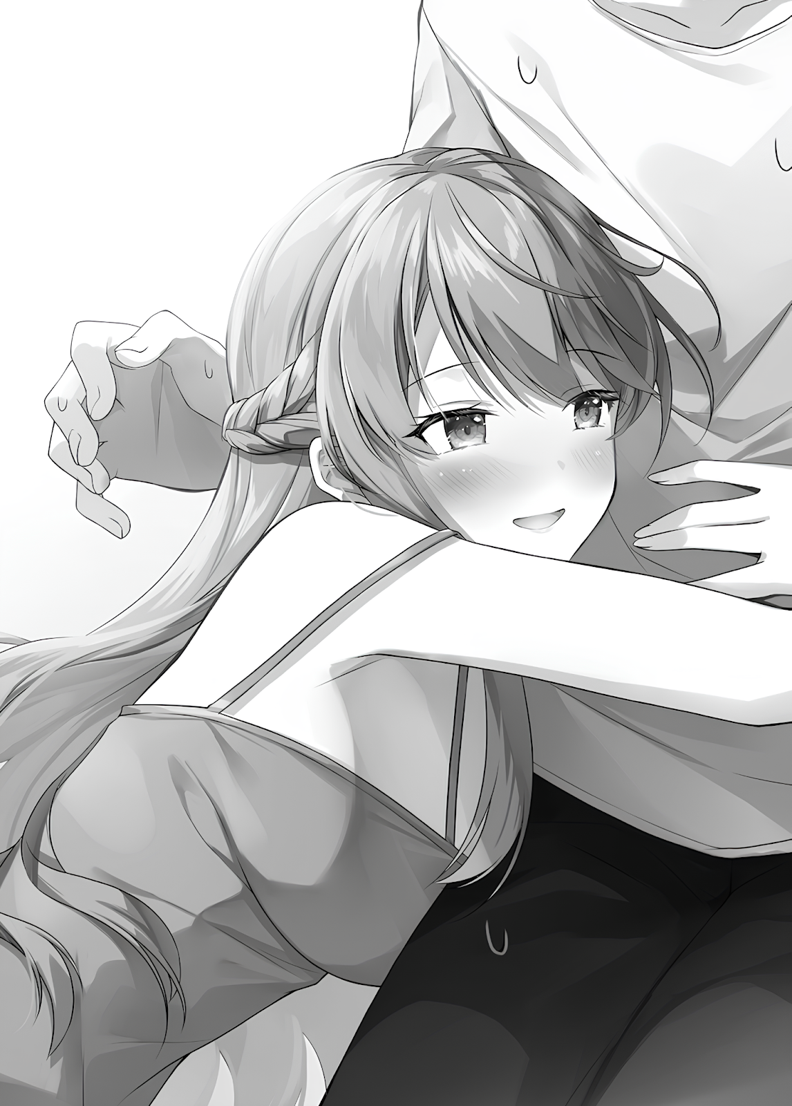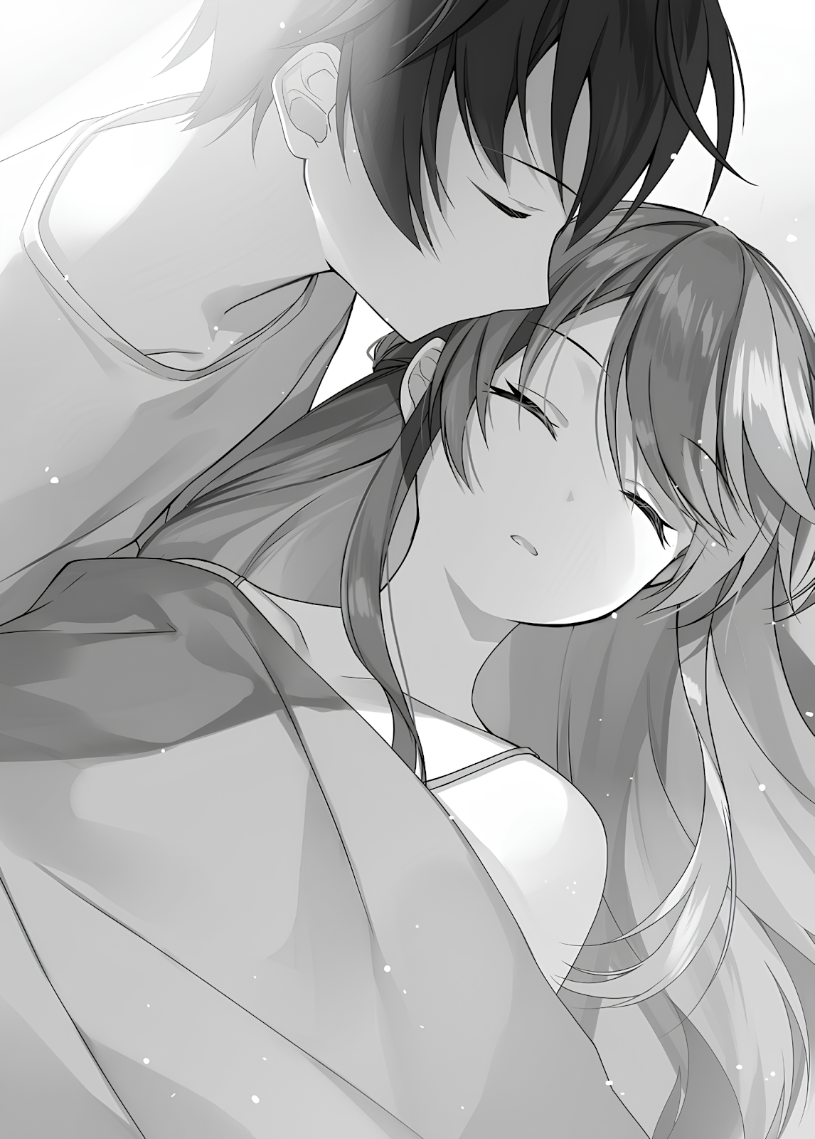 Não houve resposta dela. Ela estava dormindo com uma expressão adorável no rosto, o que estava totalmente bem. Eu só tinha dito isso para ter certeza de que ela estava dormindo. Quando toquei seu cabelo gentilmente, ele fluiu suavemente por entre meus dedos.