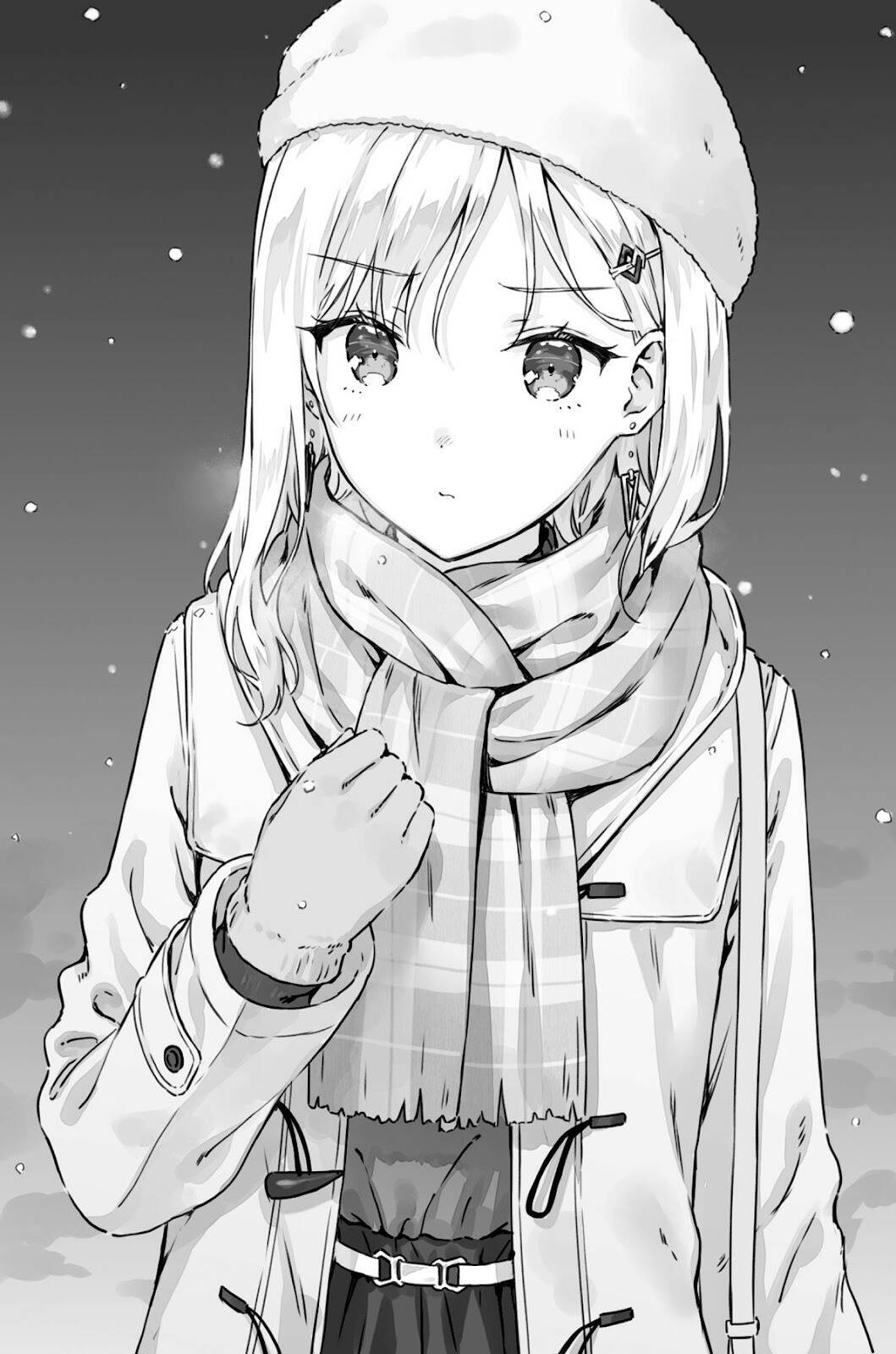 Ayase não estava acostumada com neve e quase escorregou algumas vezes, então mostrei um truque: era preciso pisar como se estivesse “agarrando” a neve com a sola do pé.