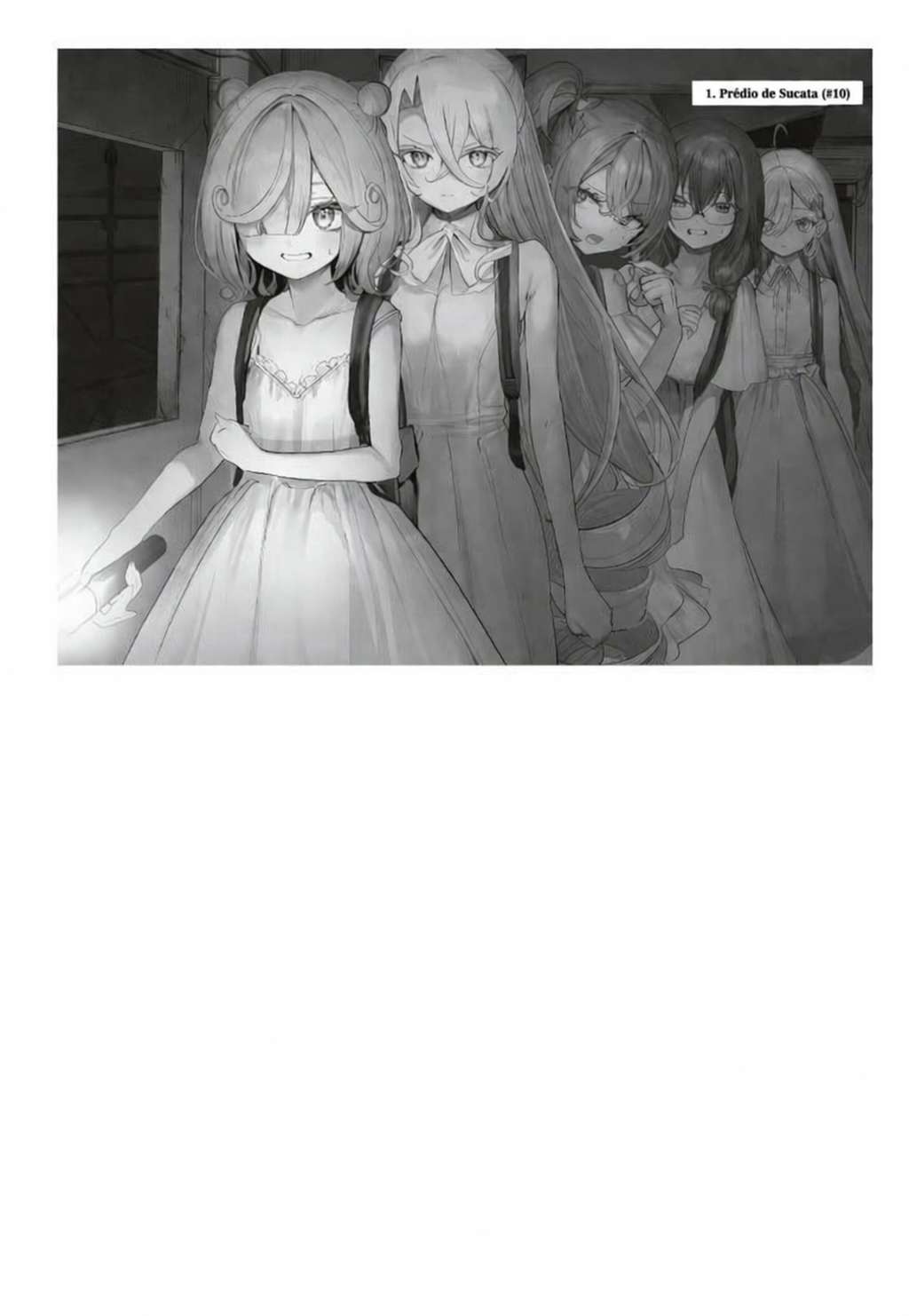 Vestia um vestido branco — daqueles que ficariam lindos sob um céu de verão, o tipo de roupa que protagonistas de visual novels costumam usar. Era o traje preparado para aquele jogo.