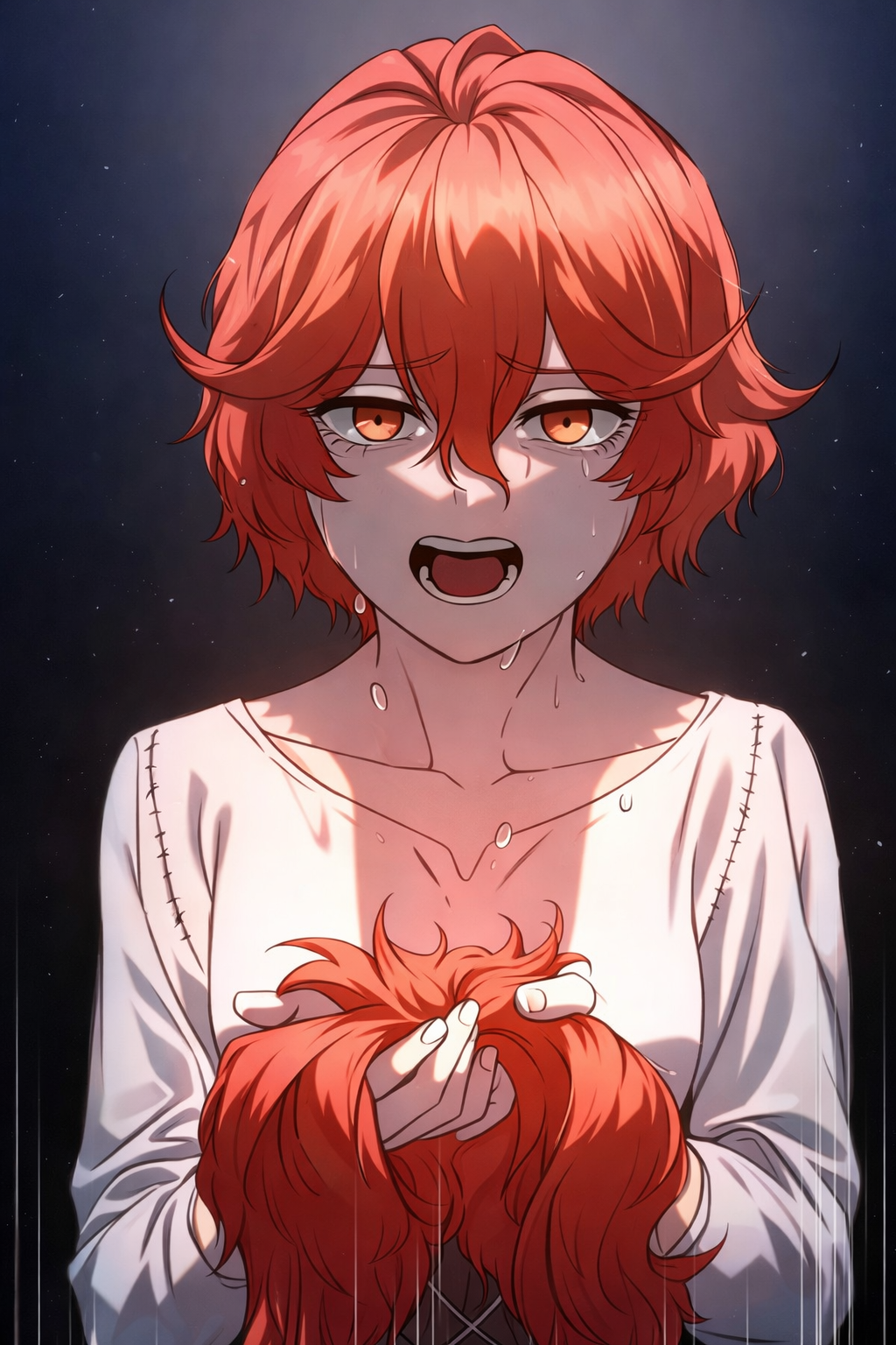 O lixo caía fora da cidade, sob a luz da lua, no céu noturno, junto com as lágrimas da menina ruiva.