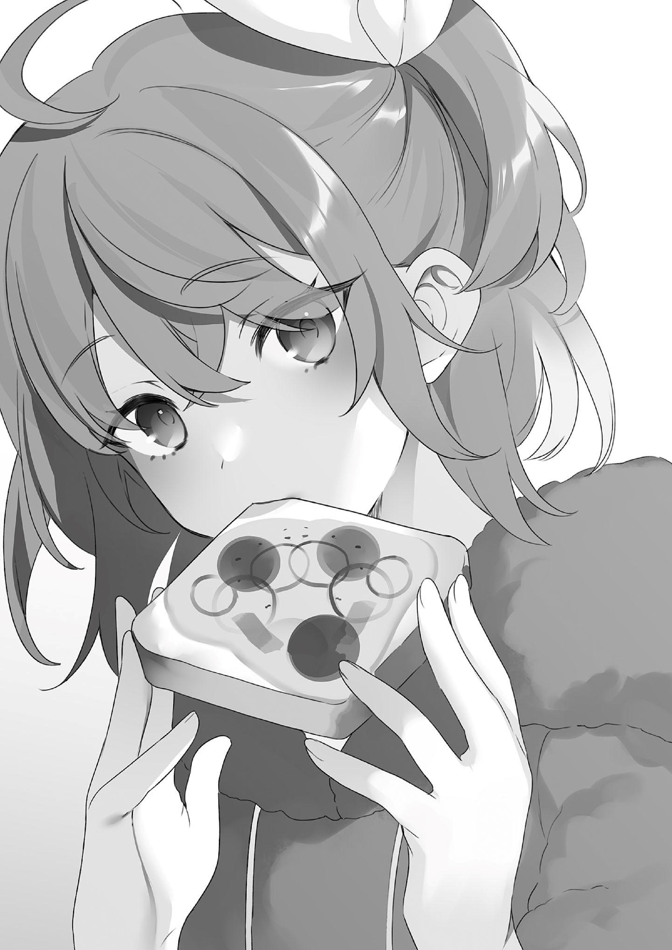 Então, dei uma boa sacudida em sua cabecinha macia. Rin, sempre vulnerável a tapinhas na cabeça, imediatamente pareceu atordoada — como um refrigerante gaseificado sem gás. Sua expressão vulnerável me fez sorrir.