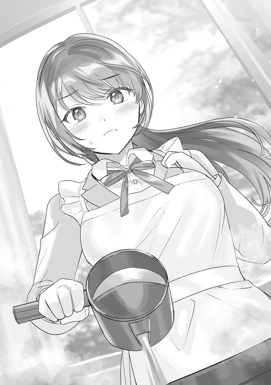 Shijoin-san, chefe da equipe de culinária, ficou no centro. Ela usava um avental branco sobre o uniforme, o cabelo preso para trás, parecendo uma cozinheira doméstica, enquanto muitos dos meninos estavam visivelmente encantados, no entanto, por baixo de sua aparência recatada, ela estava incrivelmente nervosa.