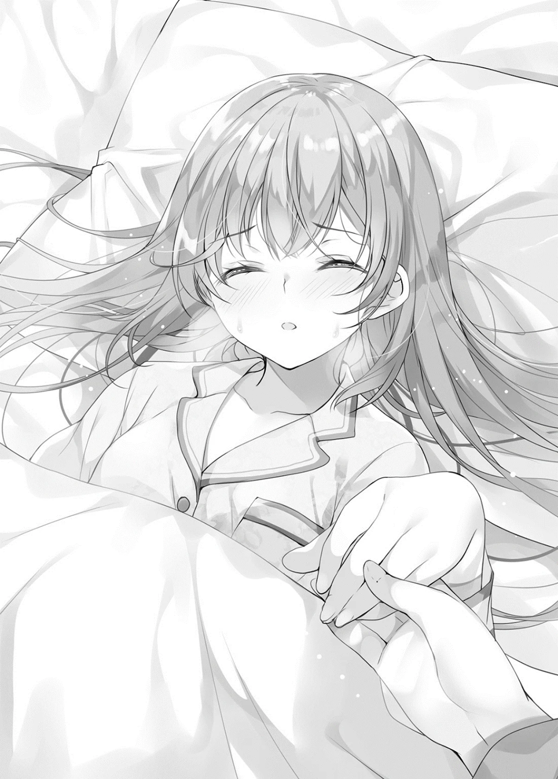 Assim que ela pediu, segurei sua mão. A palma era tão pequena. Na Academia, Hinako era orgulhosa e competente, mais do que qualquer um, mas a mão dela — só de tocar parece que pode quebrar, é tão fina, tão pequena, tão delicada.