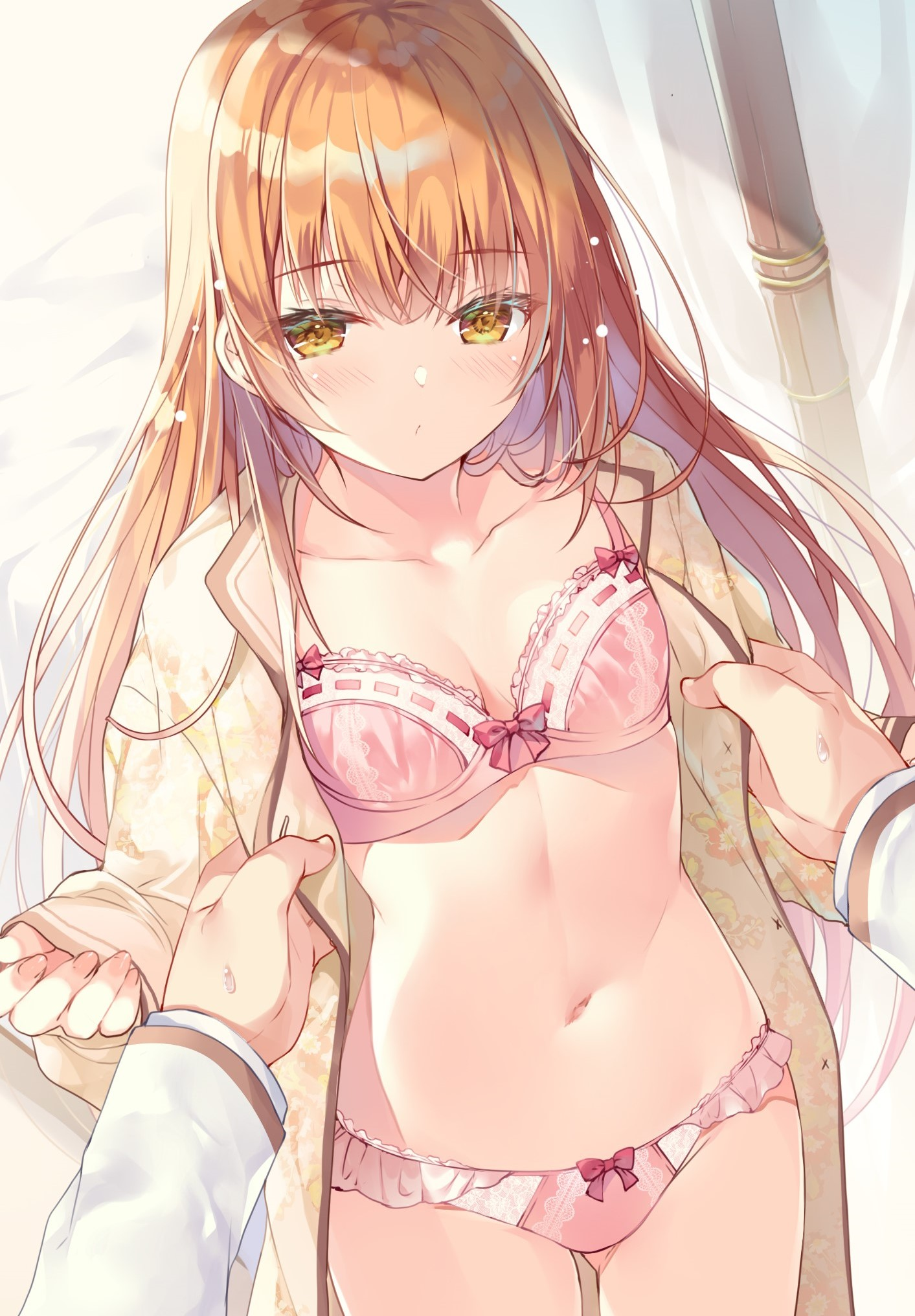 Quando entrei no quarto, Hinako dormia tranquilamente em uma cama com uma colcha luxuosa.