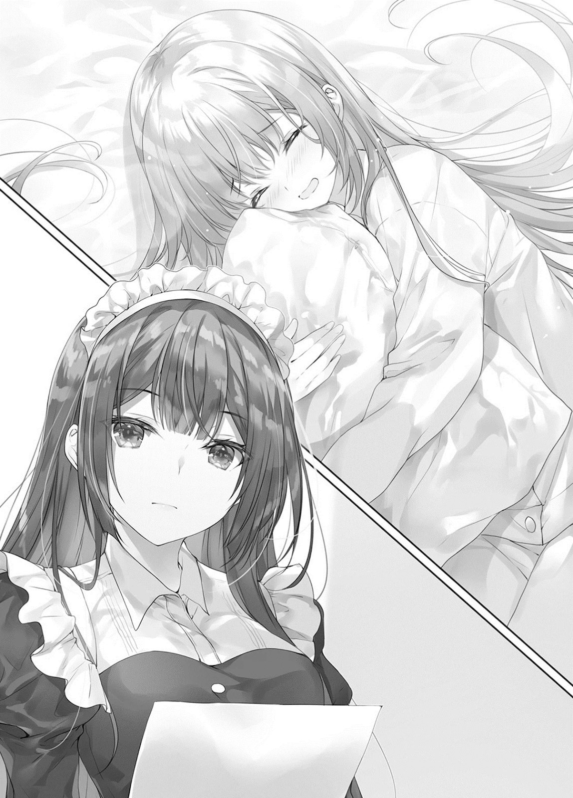 A porta se abriu, e Shizune entrou. Ela se aproximou de Hinako, que estava jogada sobre a cama, e olhou os documentos que tinha em mãos.