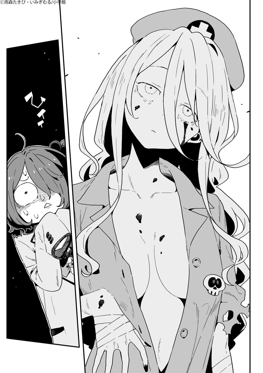 Quem se levantou lentamente foi uma garota usando uniforme de enfermeira. Era a Shikiya-san, a "gal zumbi" do conselho estudantil. Saí disparado da sala do clube por instinto, batendo a porta atrás de mim.