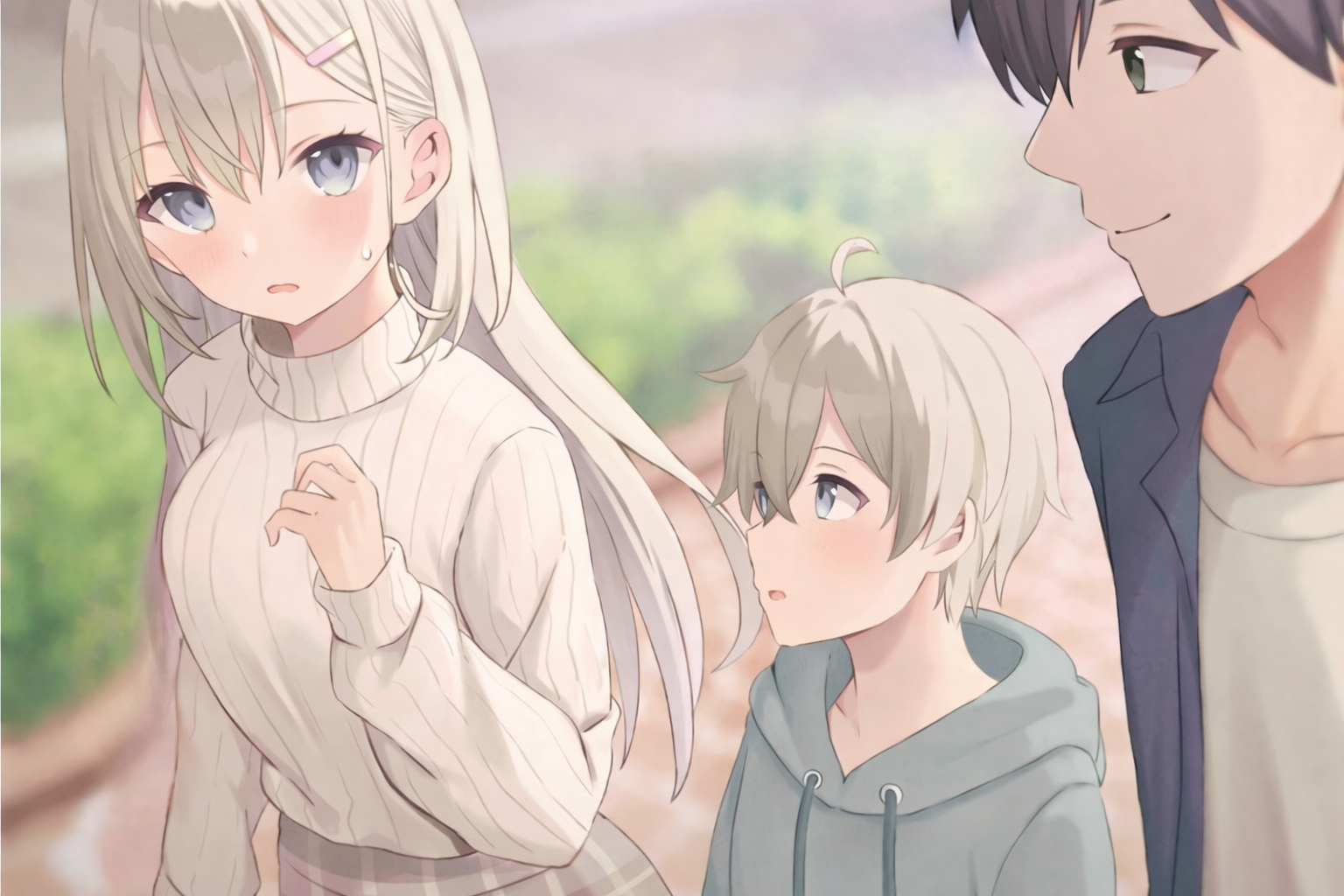Shūichi e Ikue sorriram. Haruto olhou discretamente para Ayaka, e ela também disse, um pouco corada: