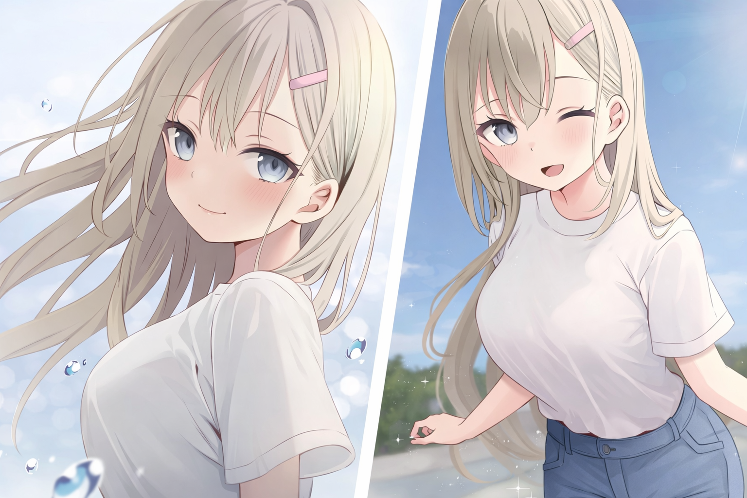 Mesmo Ayaka tendo se vestido com suas próprias roupas, Haruto simplesmente não conseguia dizer que combinava com ela naquele momento, incapaz de expressar um elogio direto. Apesar disso, Ayaka exibiu uma expressão tímida e feliz.