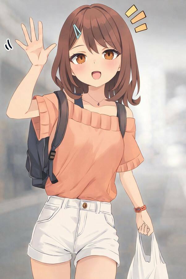 Ayaka, abraçada pela empolgada Saki, tentou ajeitar o cabelo às pressas com os dedos.