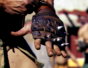 Eu esperei mais uma vez, e oji-san voltou em três minutos com uma arma para lutar chamada cestus.